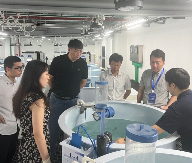 在三亚海洋研究院,胡景杰教授代表实验室热烈欢迎艾庆辉院长一行的到来,并介绍了实验室的建设目标、研究方向、工作任务、人才队伍等基本概况。在胡景杰教授的带领下,调研团还参观了实验室的水产养殖系统和大型仪器设备平台,了解管理及运行机制。随后,与会人员对实验室建设、养殖系统的运维以及大型仪器设备开放共享工作进行了深入研讨和经验分享。此次调研有助于了解国家对海洋科技、种业创新和科研平台建设等方面的最新思路,为水产学科高质量发展提供参考。