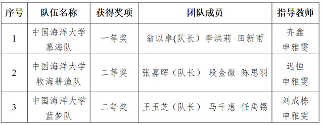 三支研究生队伍在第四届渔菁英挑战赛获奖名单