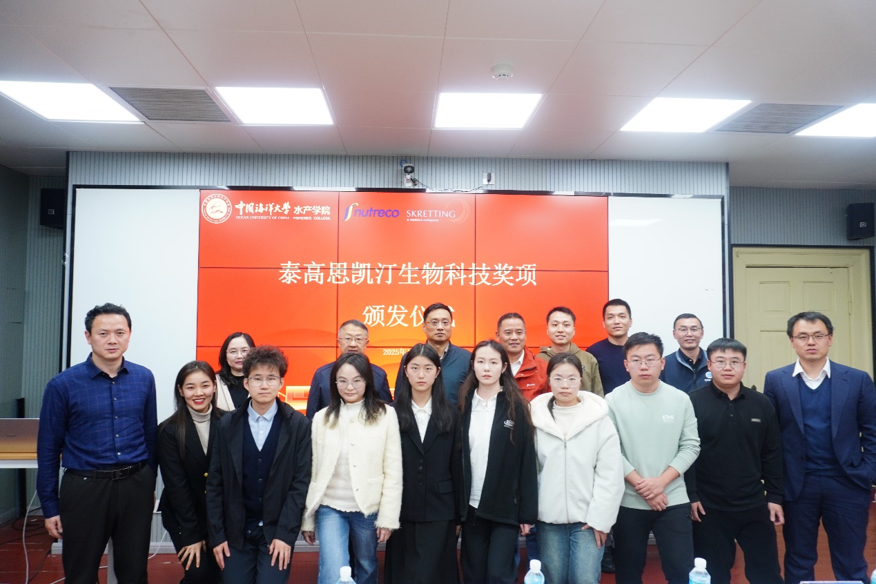 张猛代表学院对陈小星一行表示欢迎,并简要介绍了学院、学科发展建设情况。他表示,思凯汀作为行业领先企业,一直积极参与高校人才培养与科研支持,为水产师生提供了宝贵的学习交流机会,颁发奖项不仅是对师生学术科研能力的肯定,更是双方深化战略合作的体现。未来,学院将牢记习近平总书记殷殷嘱托,继续拓展校企合作的广度与深度,推动科技创新与产业需求对接,更好地把服务“蓝色粮仓”建设作为重要着力点,引导更多毕业生投身海洋强国建设。