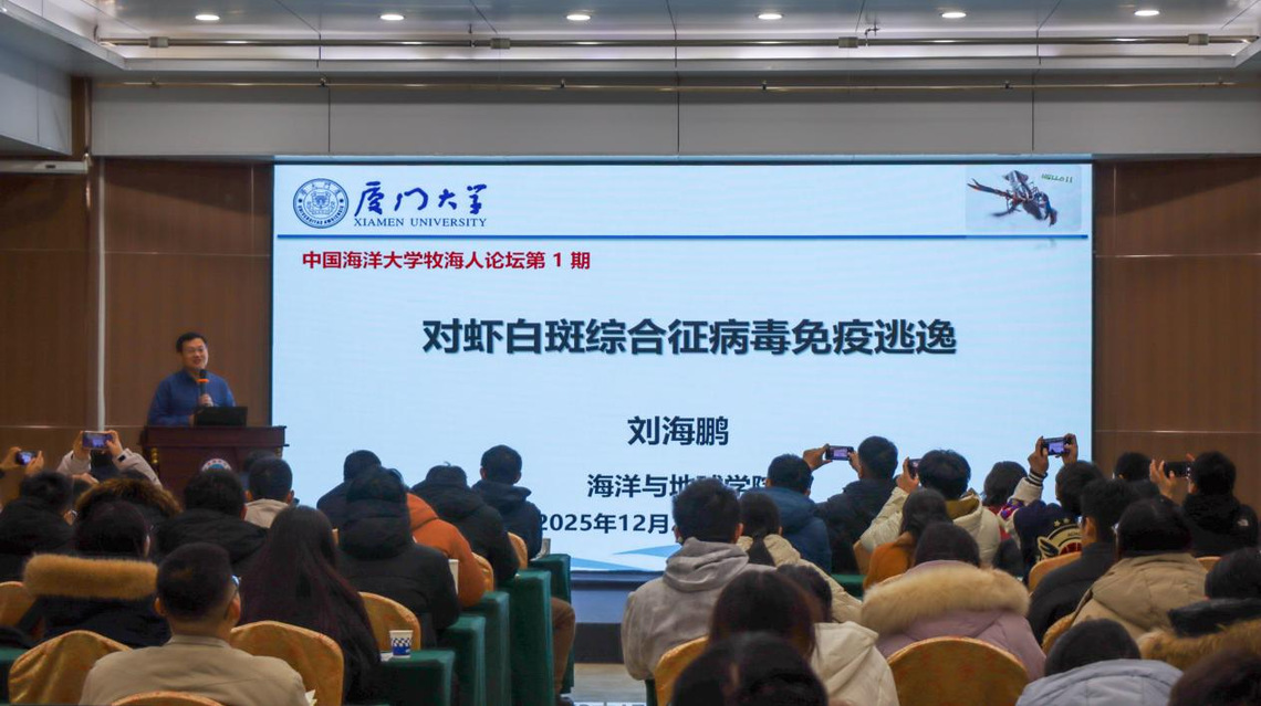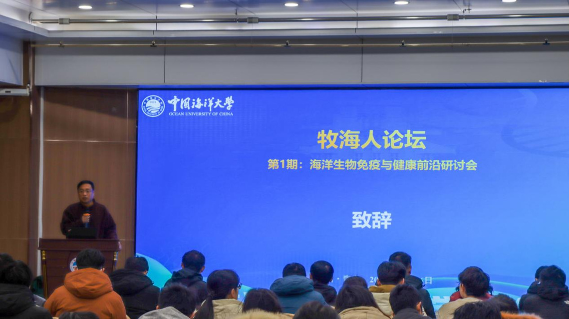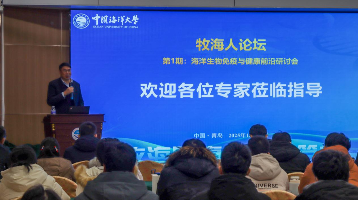 12月26日,大渔直播 重点打造的学术品牌“牧海人”论坛在鱼山校区学术交流中心顺利举办。本期论坛由大渔直播 和农业农村部水产动物营养与饲料重点实验室联合主办,紧扣国家“蓝色粮仓”建设战略与水产养殖绿色发展核心需求,旨在搭建跨研究方向的学术交流与互鉴平台,培育“前沿引领、交叉融合”的创新生态,提升我院研究生的人才培养质量。本期论坛特邀嘉宾是宁波大学李成华研究员和厦门大学刘海鹏教授。学院党委书记张猛、院长艾庆辉出席论坛,副院长刘阳、万敏和高勤峰主持论坛,学院教师和研究生130余人参加本次论坛。