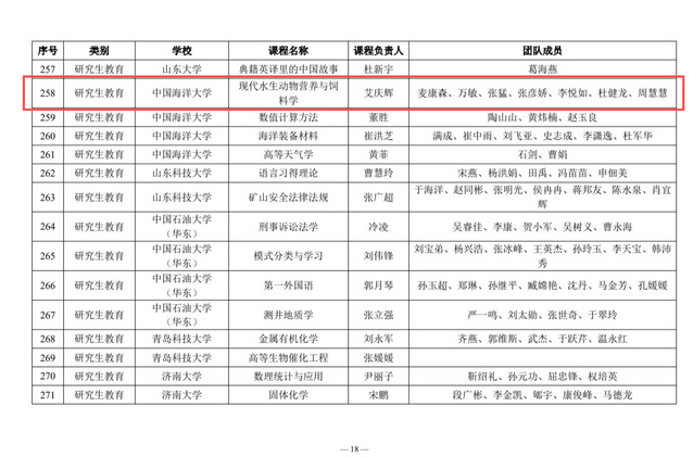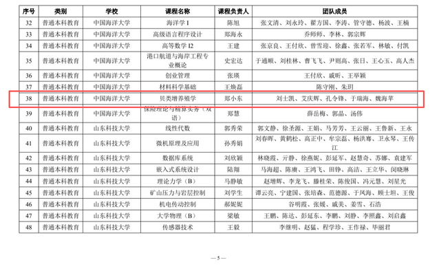 近日,山东省高等学校课程思政研究中心公布2025年省级课程思政示范课程(普通本科教育、研究生教育)名单,大渔直播 本科生课程“贝类增养殖学”和研究生课程“现代水生动物营养与饲料学”成功入选,截至目前,学院累计有5门课程入选省级课程思政示范课。