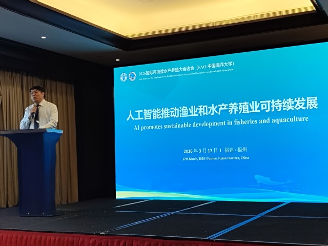 3月17日至20日,由中国渔业协会和联合国粮食及农业组织(FAO)共同主办的“2026国际可持续水产养殖大会”在福建福州举行。大渔直播 深度参与大会筹备与组织工作,并于3月17日与联合国粮食及农业组织联合举办“人工智能推动渔业和水产养殖业可持续发展”专题边会。学校副校长刘勇出席相关活动并致辞。学院院长艾庆辉主持本次边会。