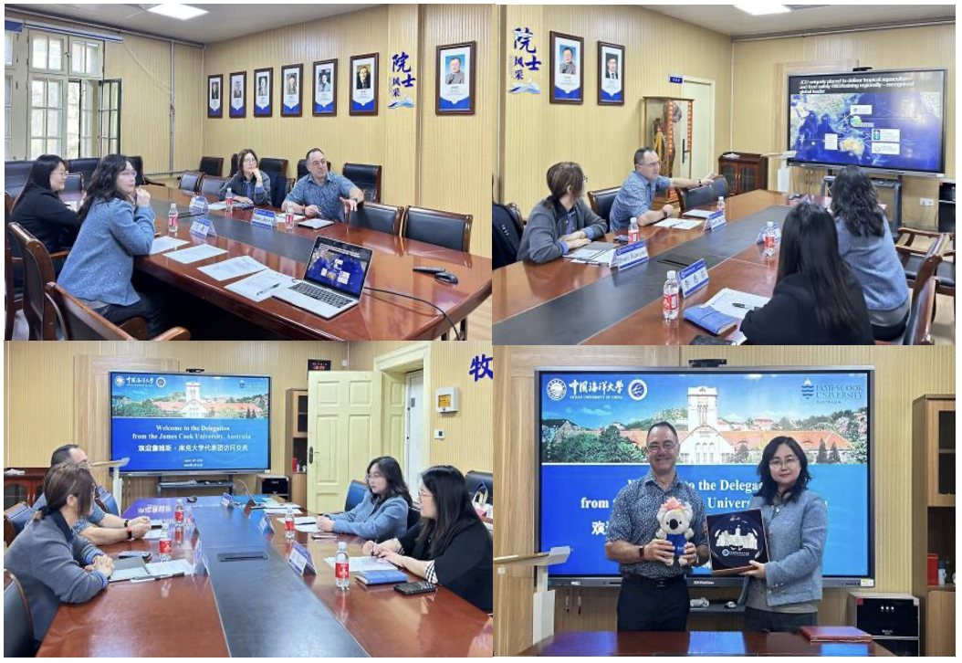 4月16日上午,澳大利亚詹姆斯·库克大学(James Cook University)科学与工程学院代表团一行访问大渔直播 鱼山校区,与大渔直播 举行座谈交流。代表团成员包括詹姆斯·库克大学科学与工程学院副院长迪恩·杰里(Dean Jerry)教授及新加坡校区副教授申雪雁博士。大渔直播 副院长万敏教授、副教授李惠茹及学院外事秘书张昕宇接待并出席座谈会。
